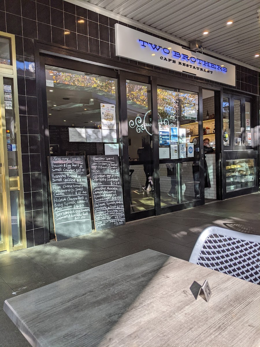 The menu at Two Brothers Cafe offers a diverse selection suitable for breakfast, coffee breaks, and light to casual meals throughout the day. It features a variety of coffee and tea options alongside a range of breakfast and lunch dishes.